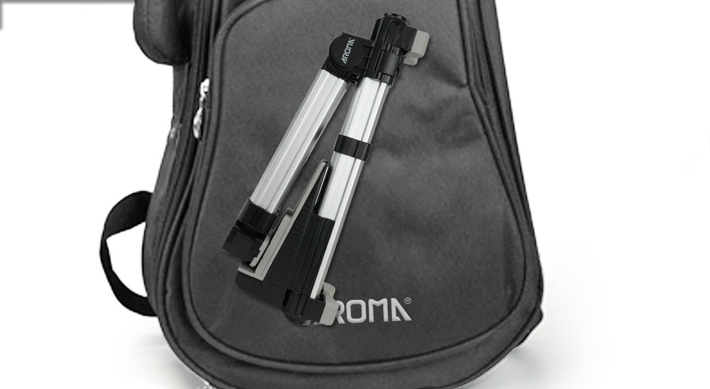 With its fully collapsible, compact design, the Aroma portable guitar stand folds down in seconds and slips easily into your gig bag or suitcase. Whether you're headed to a practice session, live gig, or on-the-go jam, this guitar holder is ready to travel wherever your music takes you.