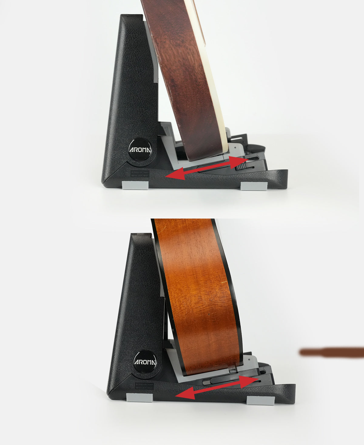 Aroma's smart sliding base adjusts effortlessly to match the thickness of different instruments. Whether you’re using a ukulele, violin, mandolin, or other compact instrument, you’ll get a snug, wobble-free fit with zero hassle.