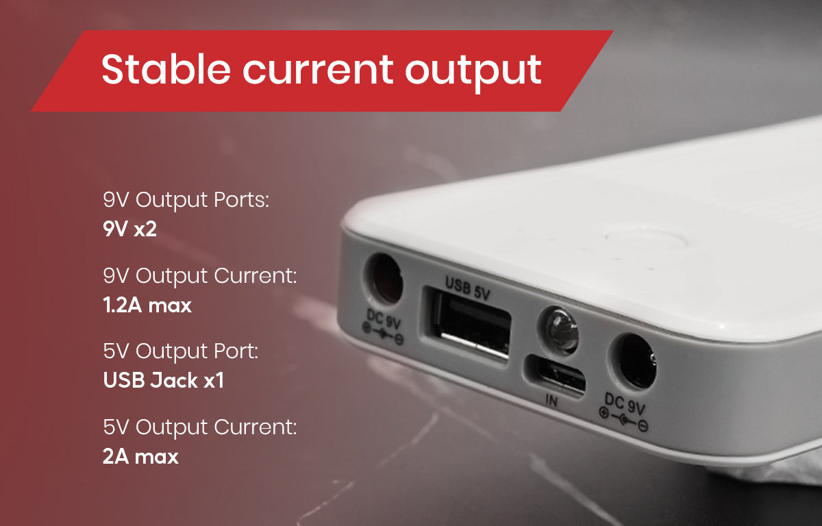 Yes. This power bank delivers a stable 9V output and supports most standard 9V center-negative pedals. However, for high-power digital pedals, it’s recommended to check power requirements before use.