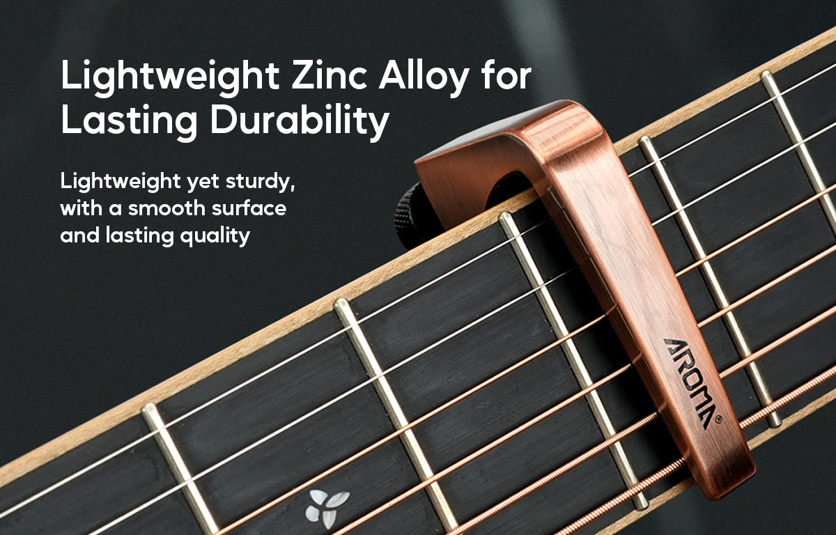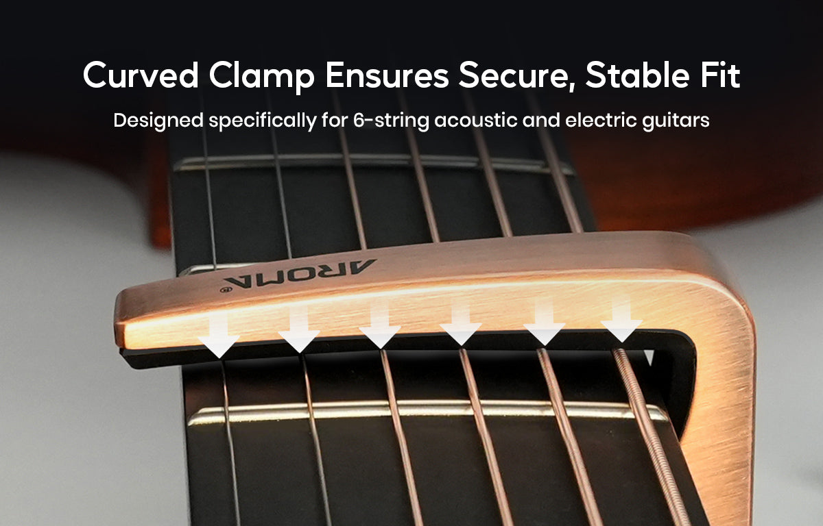 The Aroma capo is designed to meet the demands of both acoustic and electric guitar players. Whether on stage or in the studio, it offers effortless transitions, consistent pressure, and elegant design—all in one compact tool.