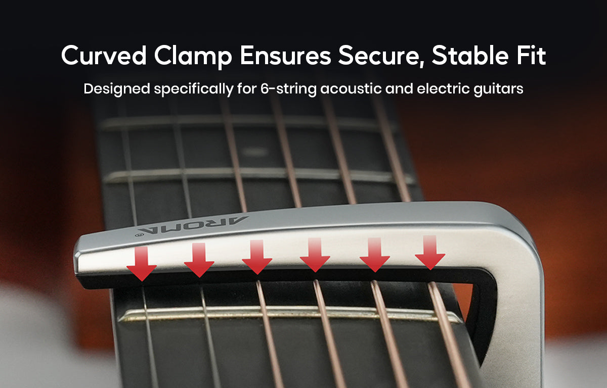 The Aroma capo is designed to meet the demands of both acoustic and electric guitar players. Whether on stage or in the studio, it offers effortless transitions, consistent pressure, and elegant design—all in one compact tool.