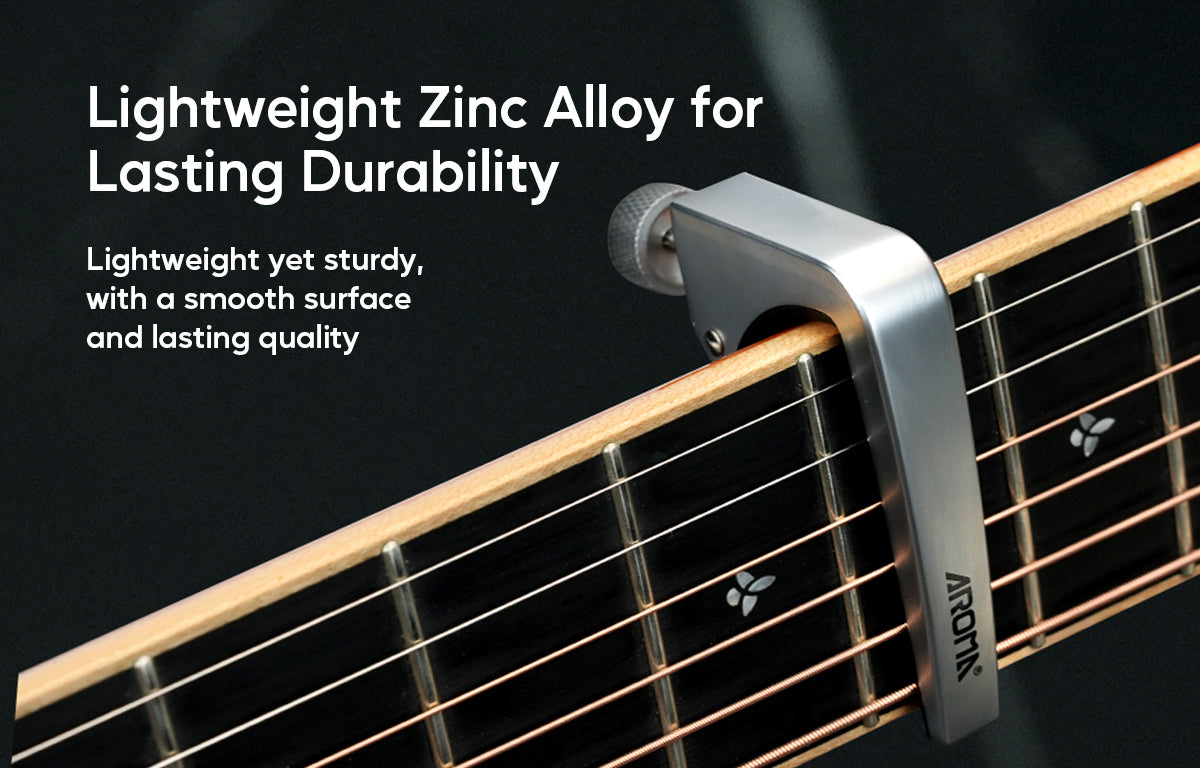 Made from premium aviation grade zinc alloy, the Aroma guitar capo is the perfect balance of strength and portability. It’s ultra-light in your hand, yet tough enough to handle years of gigs, practices, and recording sessions. The smooth finish feels premium because it is.