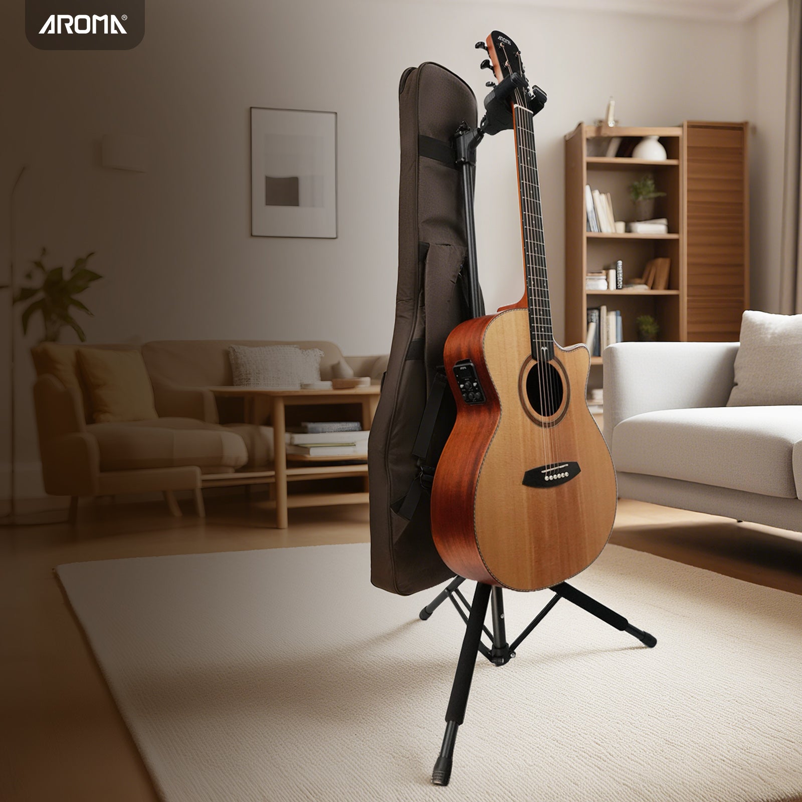 Aroma Universal Portable Guitar Stand with Auto-Lock Neck Holder Floor Guitar Holder One-button Adjustable Height In Solid Tripod
